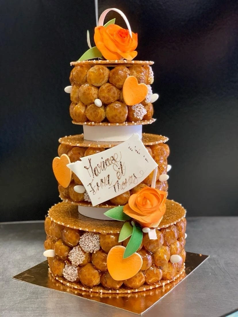 Nous réalisons des pièces montées sur mesure, composées de délicieux choux au caramel et de nougatine, parfaites pour sublimer votre journée spéciale. Chaque pièce montée est préparée avec soin dans notre atelier, en respectant la tradition artisanale, pour offrir un dessert aussi beau que savoureux.